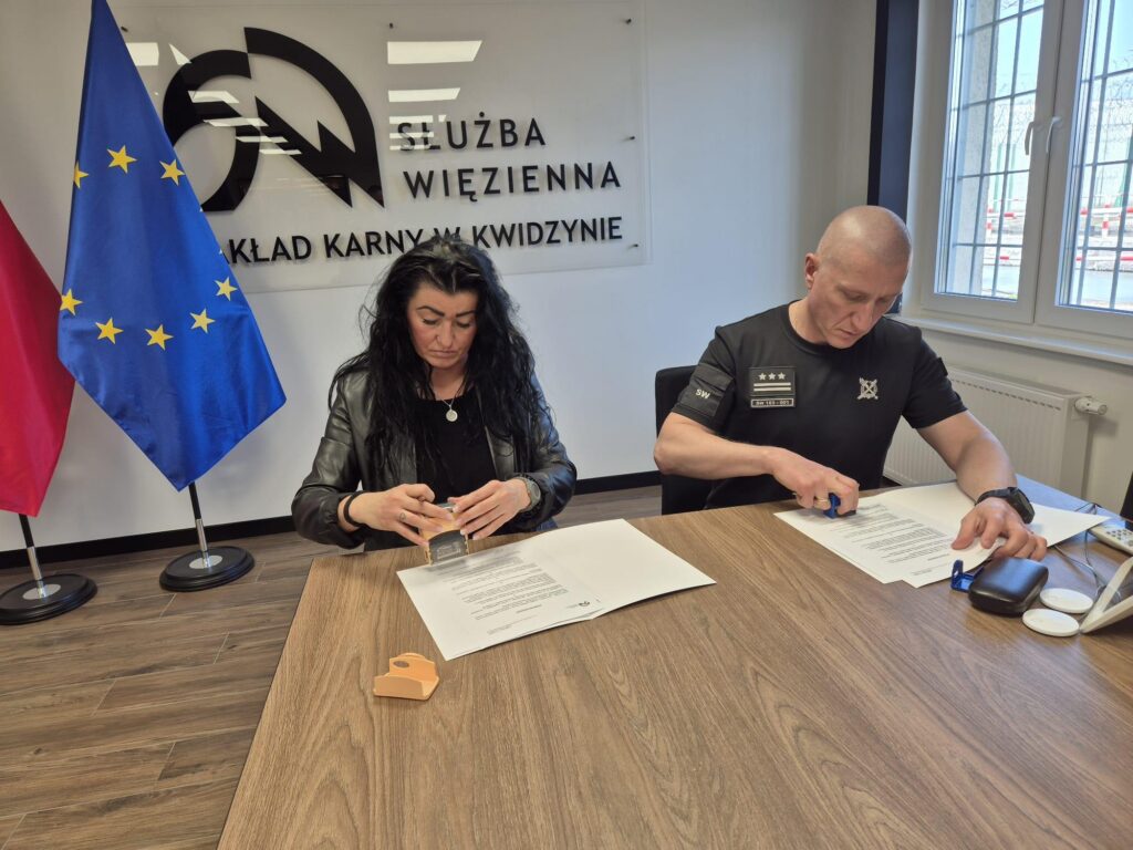 Zakład Karny w Kwidzynie nawiązał współpracę z Kwidzyńskim Stowarzyszeniem Ochrony Zwierząt „Adopciaki Miłosna”. Porozumienie podpisali płk. Wojciech Rumiński, Dyrektor Zakładu Karnego w Kwidzynie oraz Marzena Adamczyk reprezentująca schronisko.