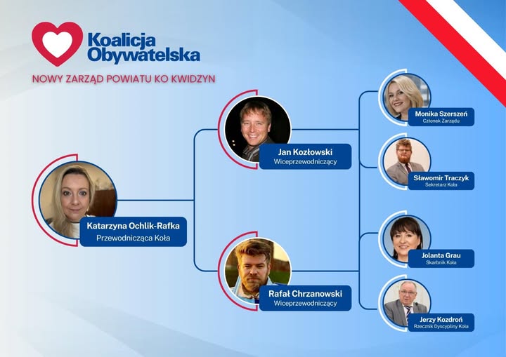 W Kwidzynie powołano nowy Zarząd Koła Powiatowego Koalicji Obywatelskiej. W jego skład weszły osoby reprezentujące różne środowiska i doświadczenia zawodowe, które deklarują zaangażowanie w sprawy lokalne oraz działania na rzecz mieszkańców powiatu.